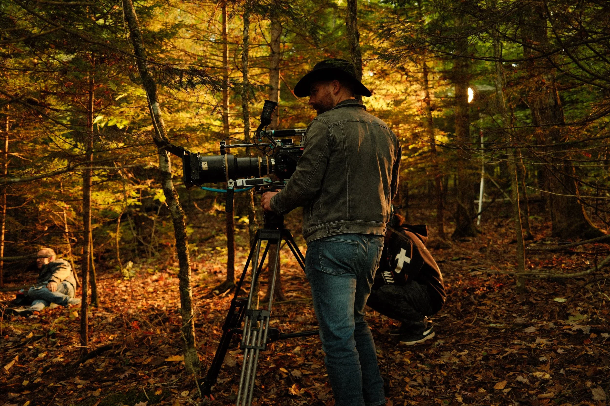Shot entirely in the mountains and forests of North Carolina, the film’s visual language was built around the concept of unfiltered nature resulting in beauty. The environment was unpredictable and often uncontrollable, requiring constant adaptation. Rather than fight the elements, the cinematography leaned into texture: shifting light, dense foliage, and shifting shadows became part of the emotional atmosphere. Anamorphic lenses were chosen to draw out the texture of the leaves and canopy, capturing the layered depth of the woods.